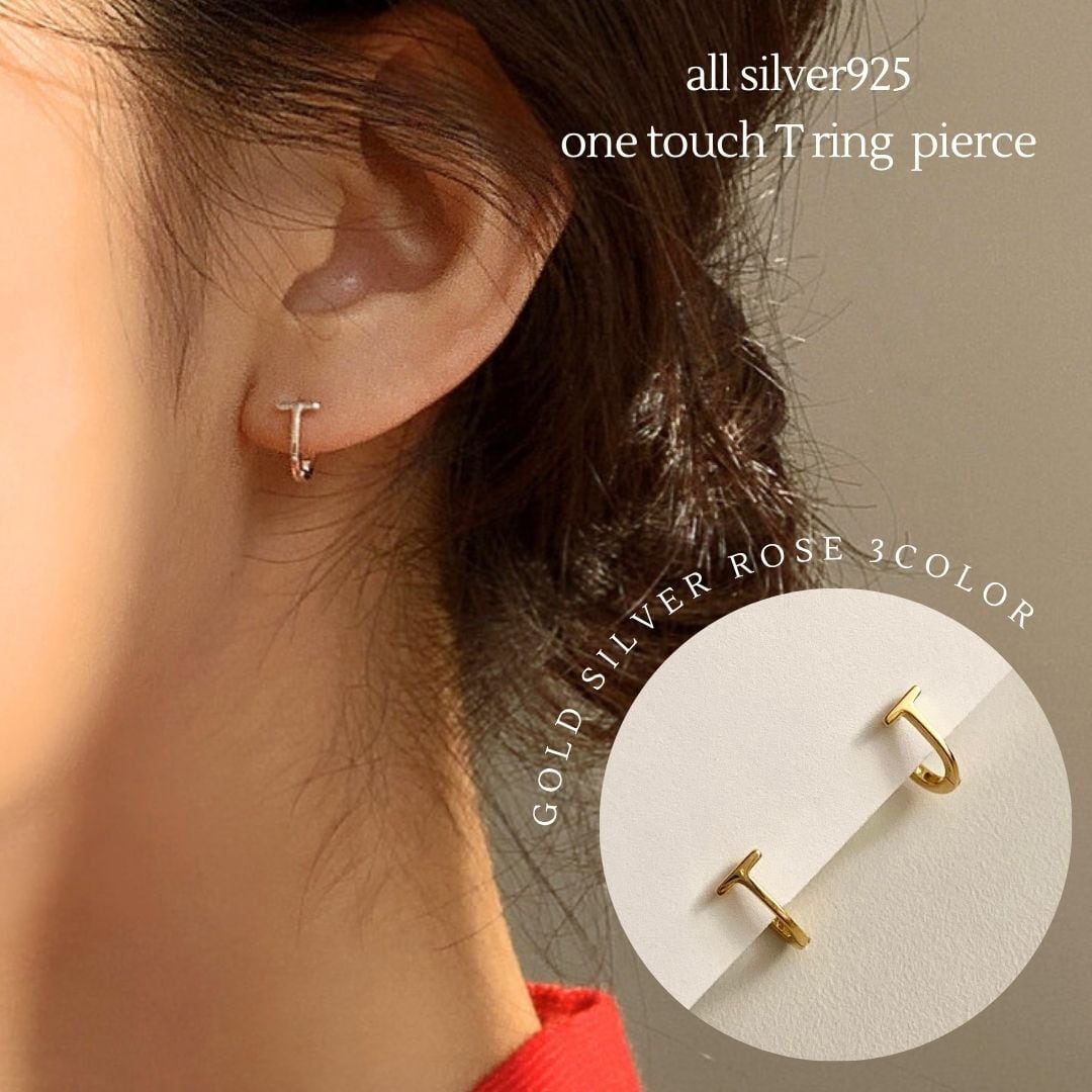silver925 slim T ring pierce【 3color 】No.P140