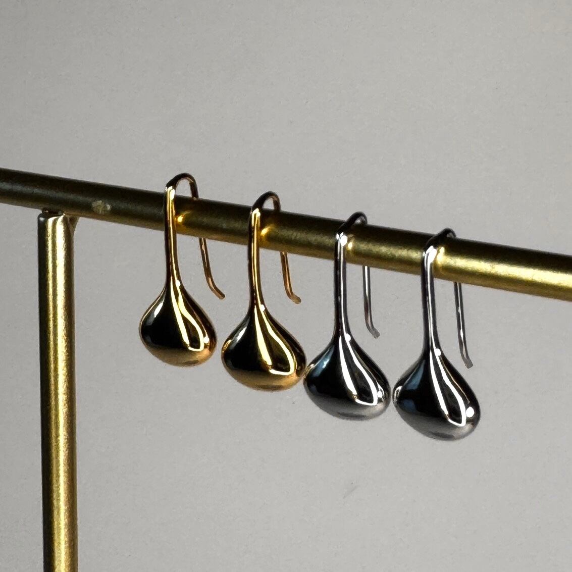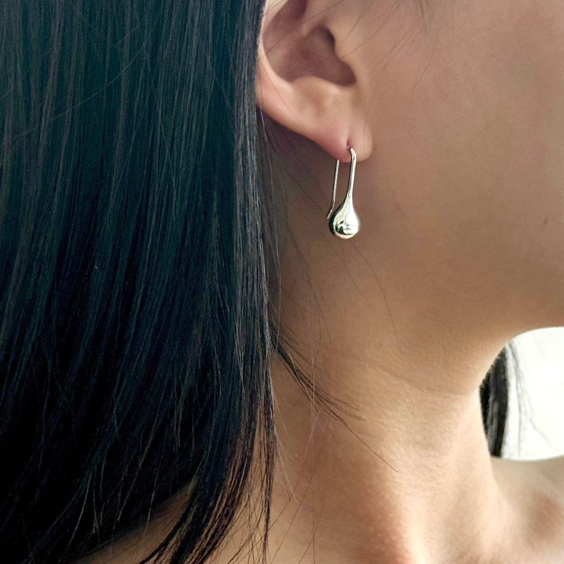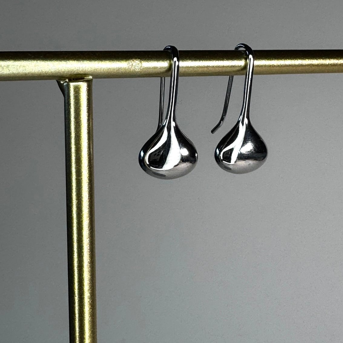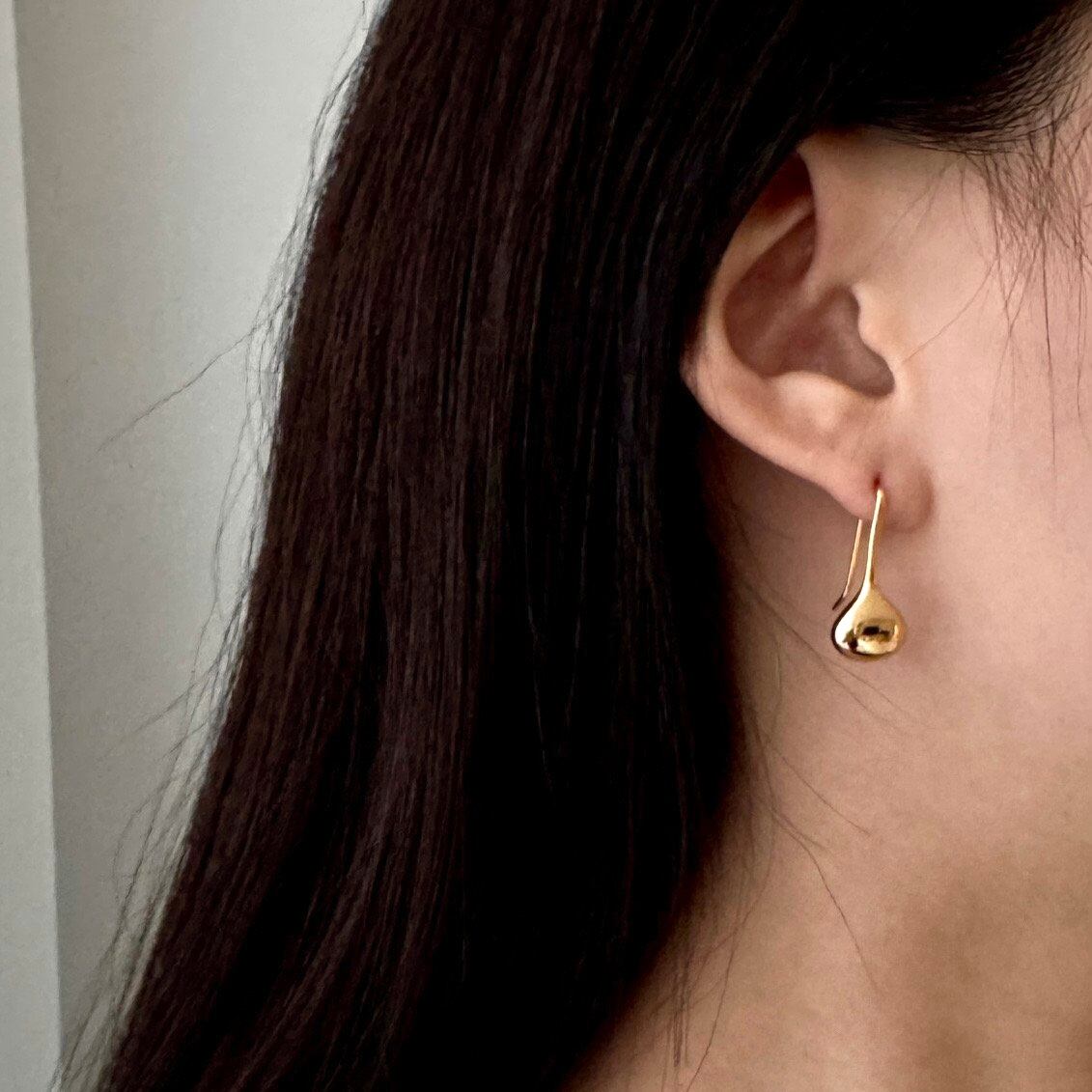 まるで雫がそのまま形になったような、立体感のあるシルエットが耳元に上品な存在感を与えます。