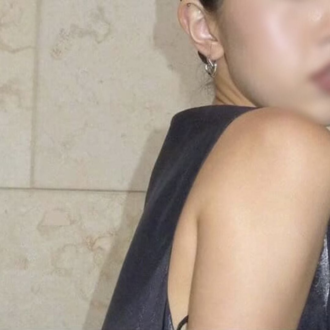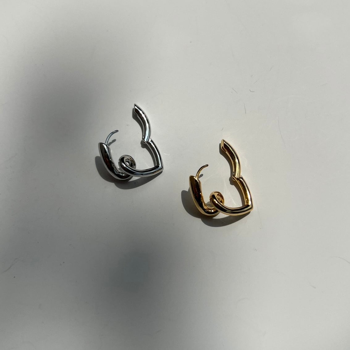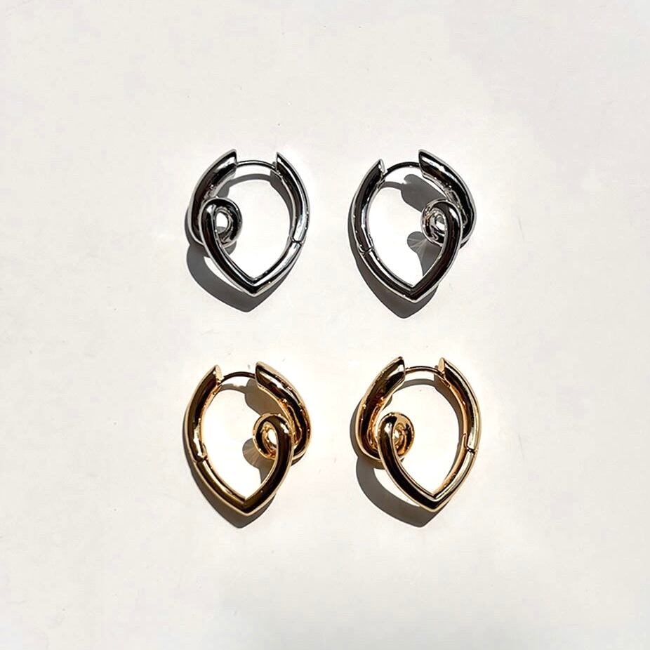 洗練された曲線が印象的な、モダンデザインのフープピアス。