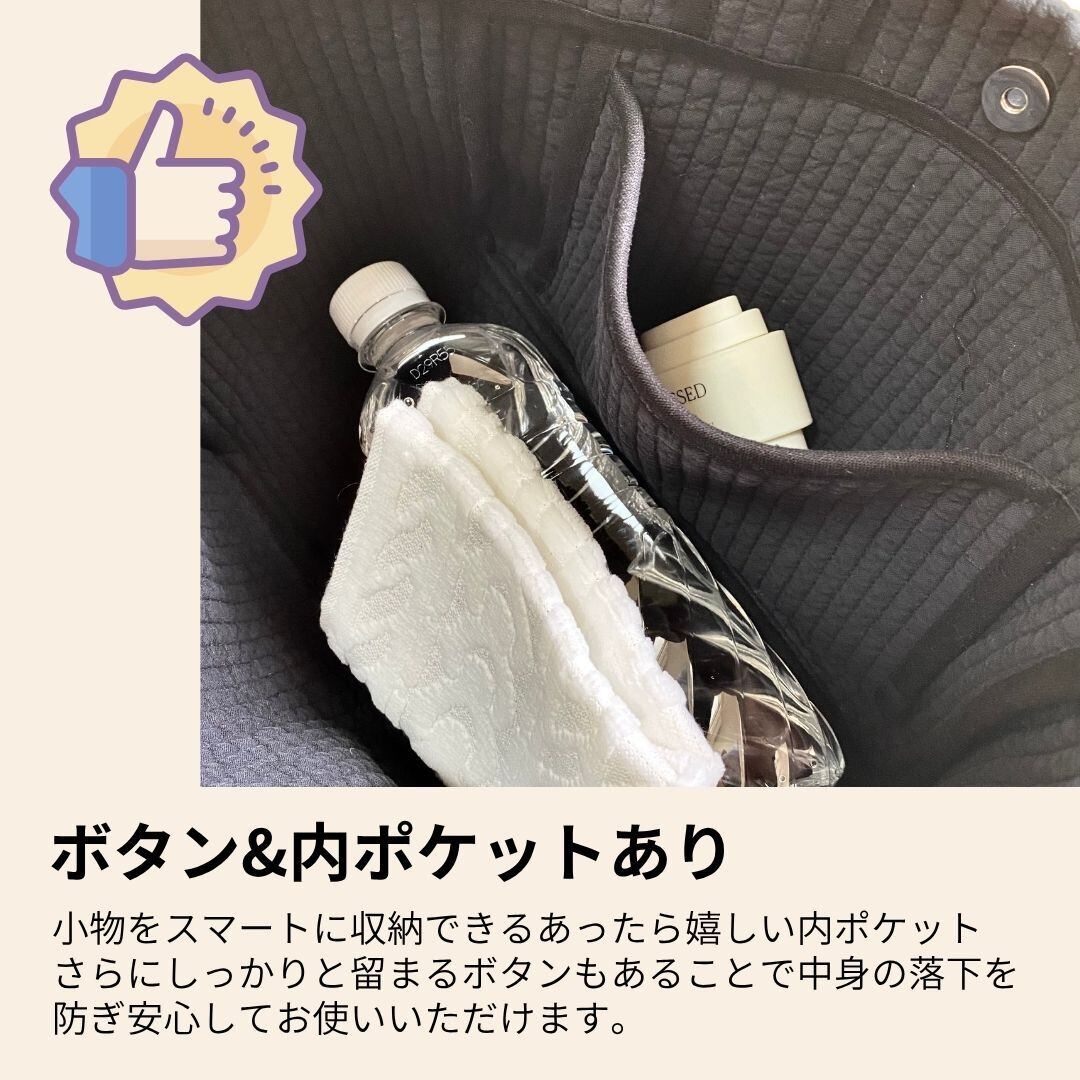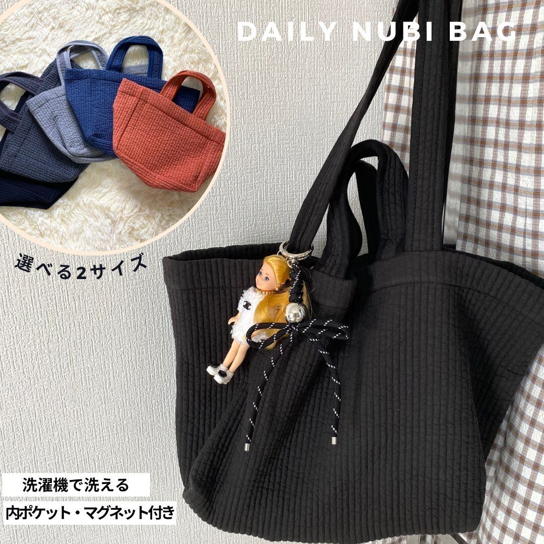 ふんわりとしたキルティング生地の2サイズ展開トートバッグ