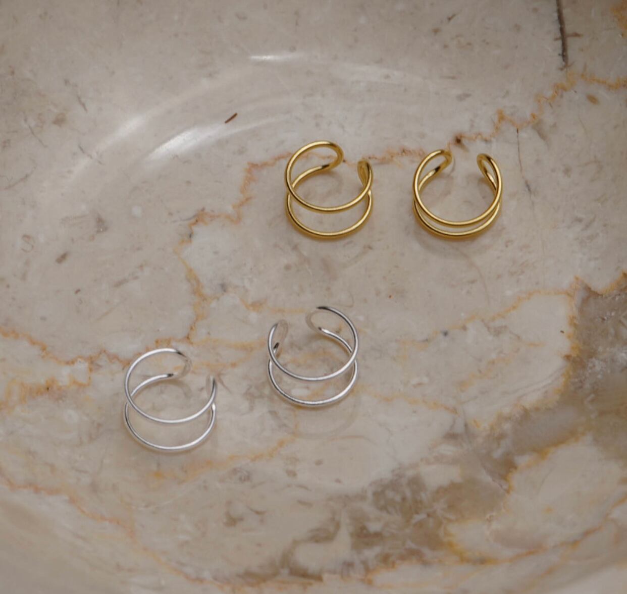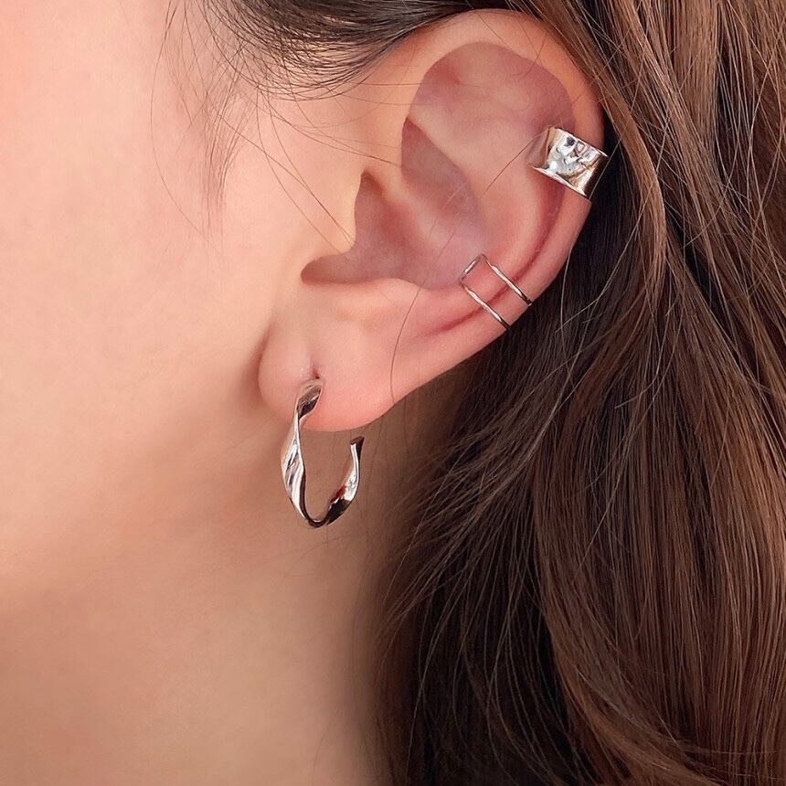 薄い二列ラインでのイヤーカフ
