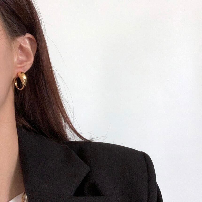 段々とスリムになるフープデザインでお顔周りの印象をキュッと引き締めてくれます◎