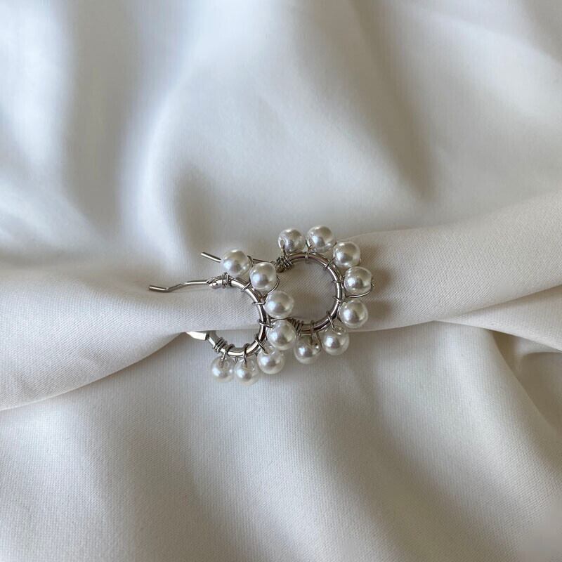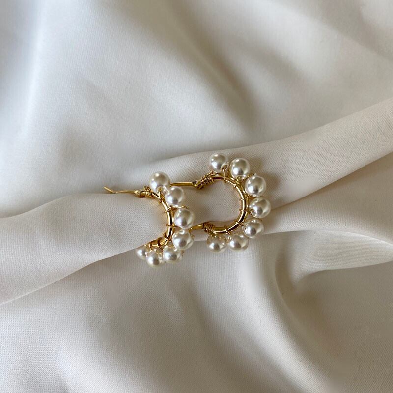 自然なカラー感のパールを一つ一つ編んで作られたミニワンタッチリングピアス