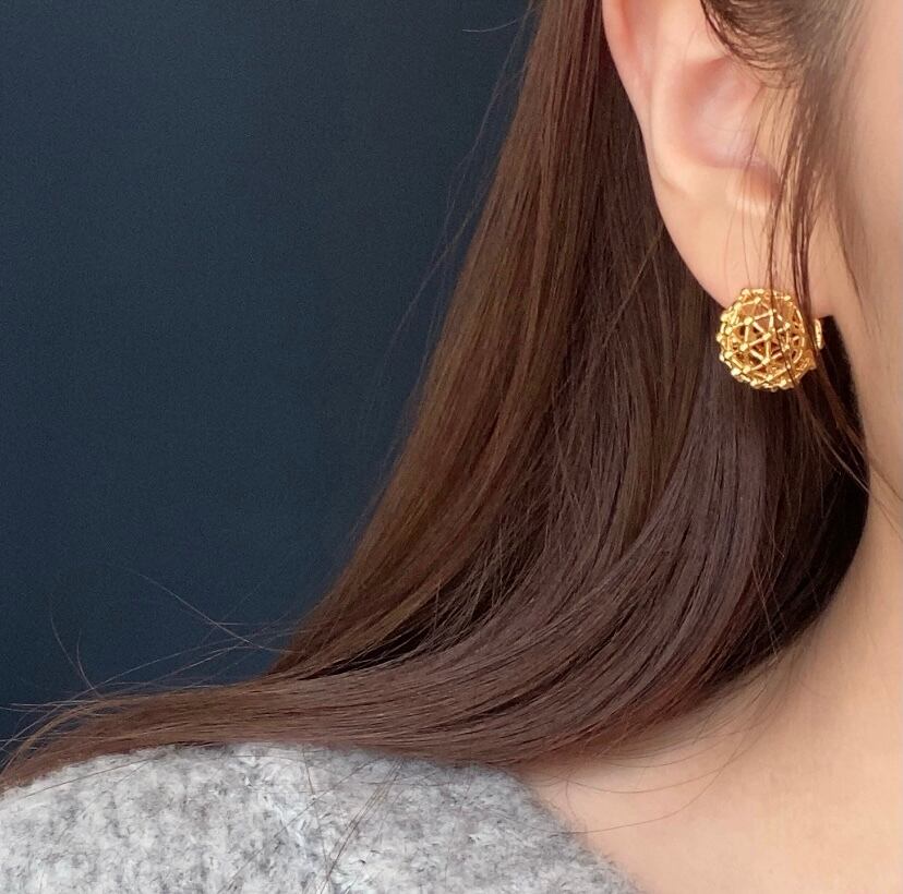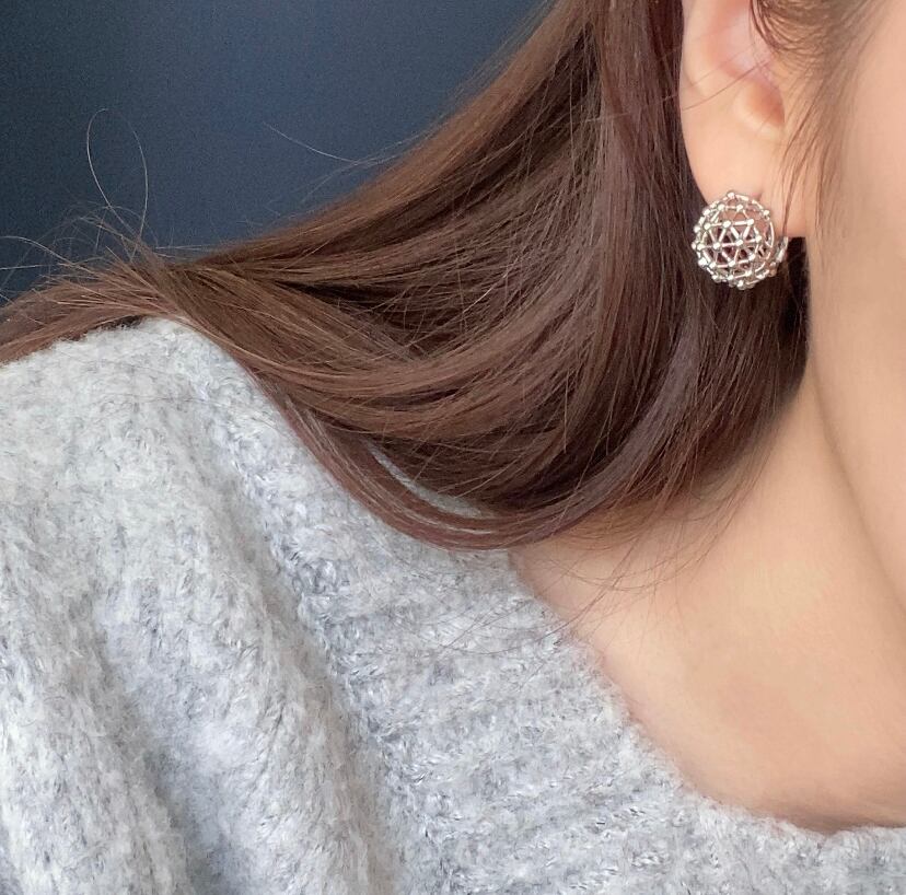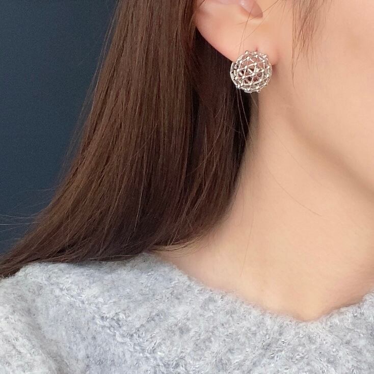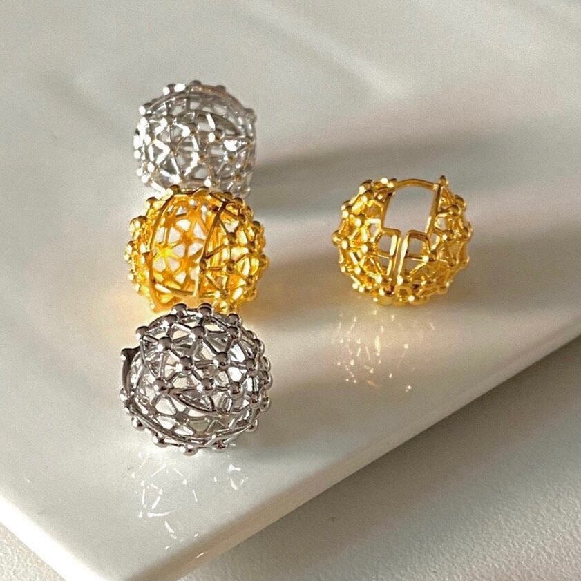 ユニークな網目状の球体型ピアス