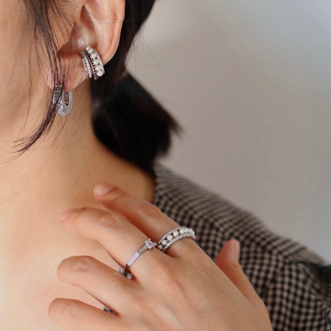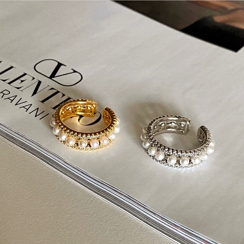 パールやキュービックジルコニアなどの同素材ピアスやイヤーカフとの相性◎