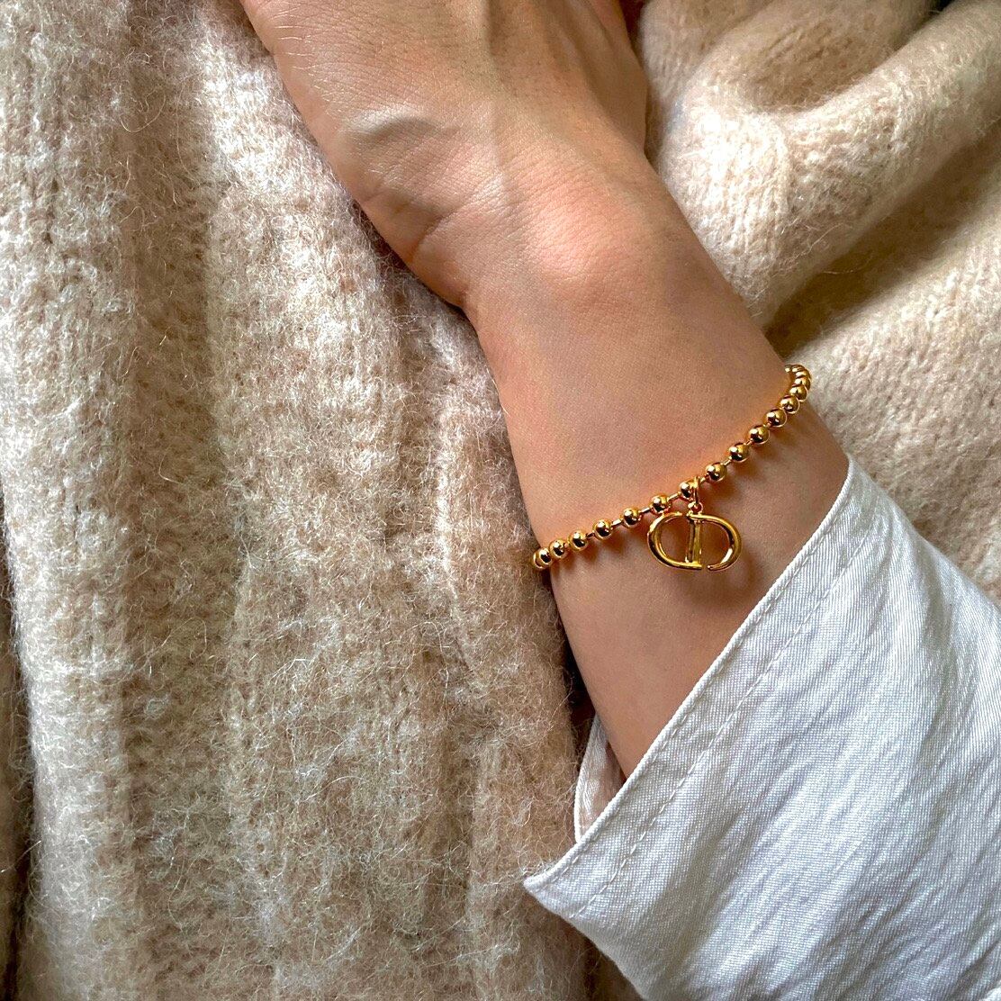18k initial CD dot chain bracelet【 2color 】No.B006