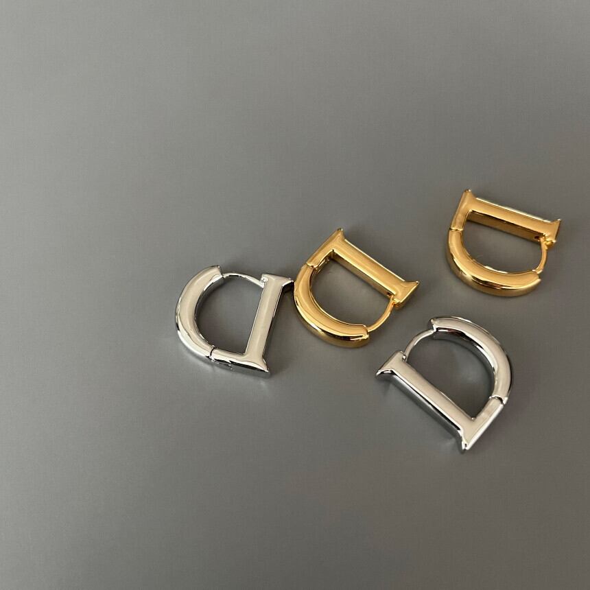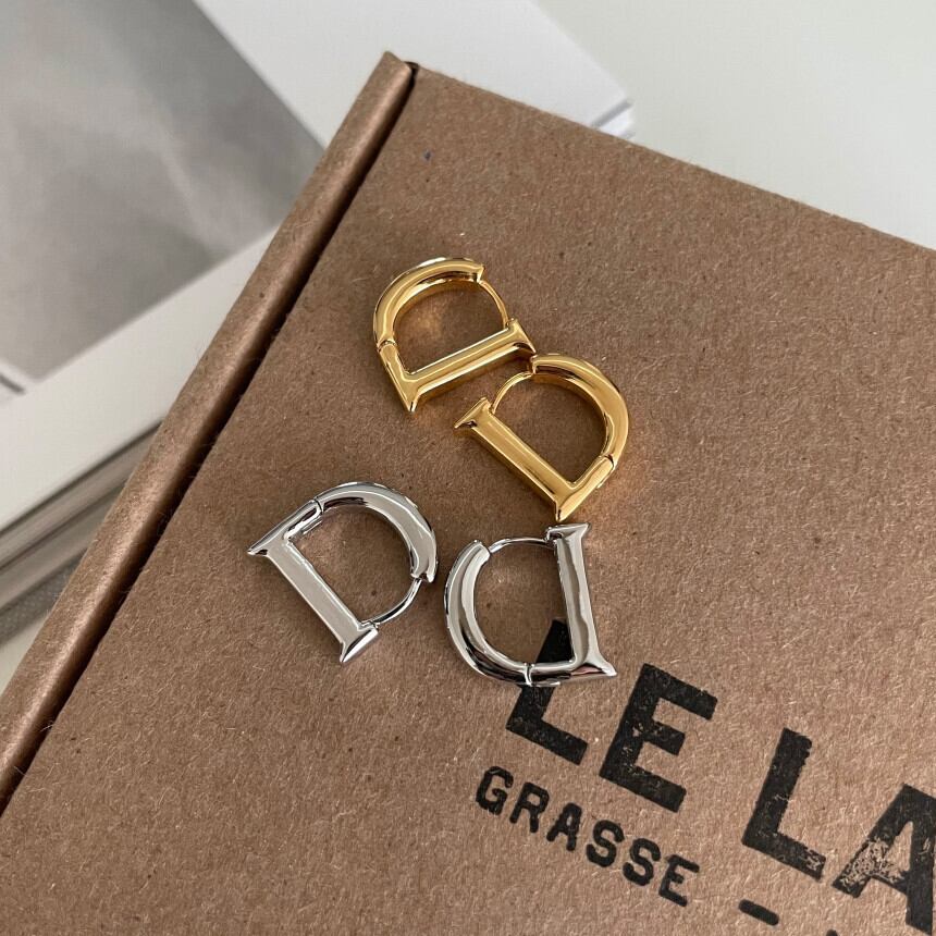 洗練されたムードのイニシャルDボールドリングピアスのスモールサイズ
