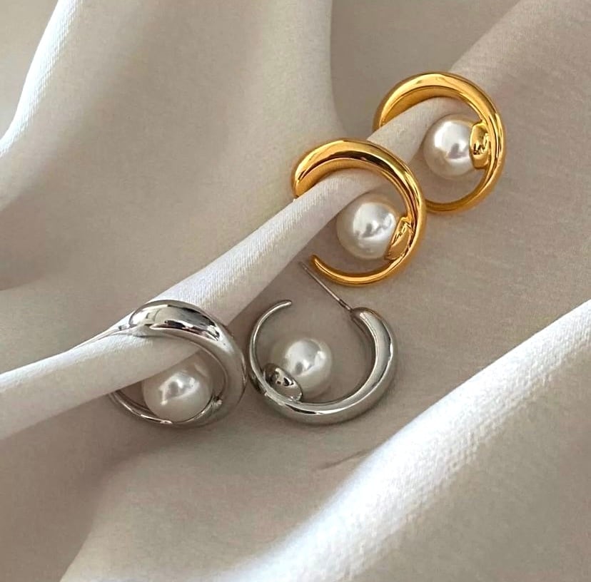 秋冬にぴったりなパールがポイントのスタッドピアス